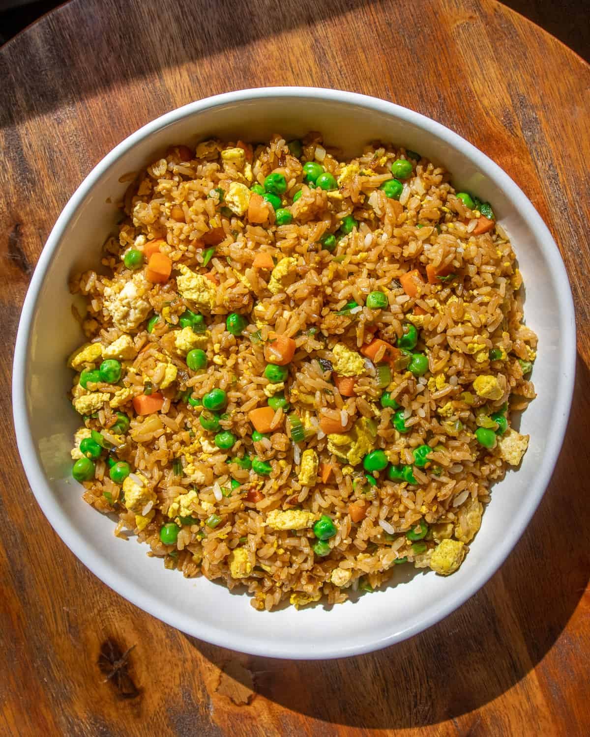 A fragrant fried rice dish made with mixed vegetables, shrimp, and seasoned with special spices, giving it Ange’s personal touch for a delightful flavor.